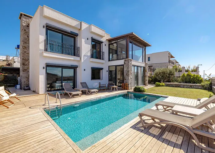 Elegant Villa Private Pool & Stunning Views Bodrum s plaveckým bazénem s 3 ložnicemi je vybavena terasou s výhledem na moře. Pláž Camel je umístěno 10 minut jízdy a Ortakent Beach je 15-minutovou jízdou od ubytování.